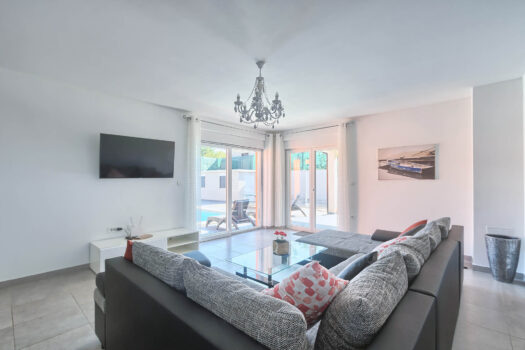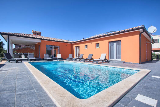 Sandro is a very attentive host with quick answers to any questions. House is new and very nice - and bathroom etc very well cleaned. Aircondition works very well and is required at this time (early Aug). Garden is a bit small - but the pool is great!