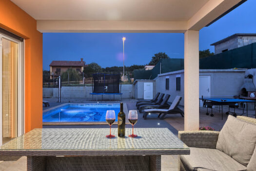 The house is perfect for 2 families. We traveled with 4 teenagers 13,14,15 and 16 years old so it was important for us to rent a house with pool and also we wanted to have the opportunity to go out for a meal in the evenings.There are several good restaurants in Meduline.Our favorites where Restaurant Istria and Salt and pepper.Though we thought there where better places in Istria for sunbathing.Its not a problem if you have a car.Everything is very close.Kamenjak and Pula had many beautiful places for swimming and our teenagers loved to jump from the cliffs. We can absolutely recommend this house.