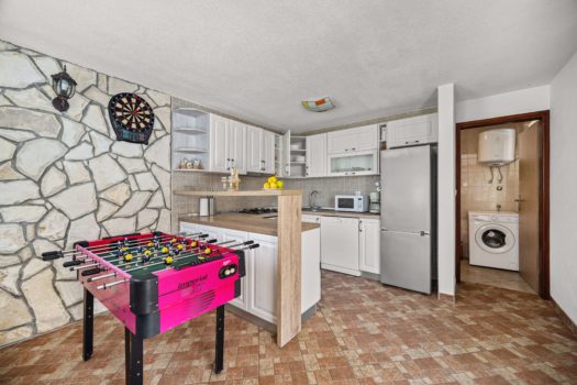 Die Villa war an sich echt super, gut ausgestattet und wir haben uns sehr über den Billiardtisch gefreut. Es gab draußen genug Liegen, Stühle und Sonnenschutz. Das Haus war von innen größer als erwartet. Jedoch waren die Betten leider sehr ungemütlich, da war die Couch im Gegenzug sehr gemütlich. Zwei der Zimmer hatten einen sehr unangenehmen Geruch, genau so der Kühlschrank. Ansonsten war alles gut. Zentrum war 15 Min Fußweg entfernt und wenn man 20-25 min gegangen ist, war ein Sandstrand und ein Liegestrand mit Steinen.